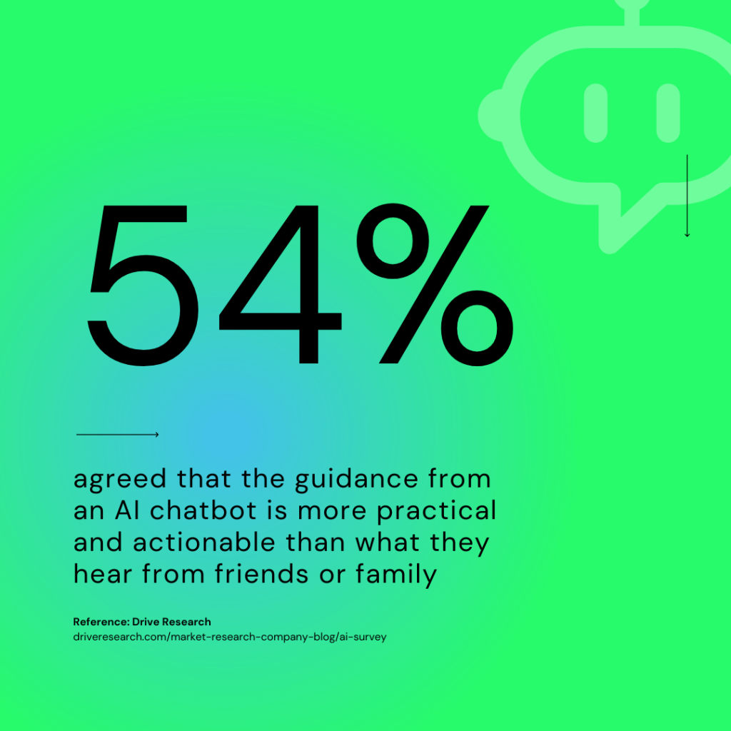 More than half (54%) agreed that the guidance from an AI chatbot is more practical and actionable than what they hear from loved ones. Instead of vague encouragement, the bots often deliver clear steps forward, something many people are craving.